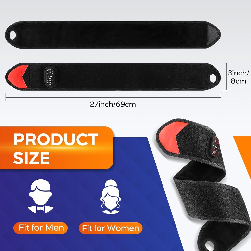 The wrap offers three heat levels and three vibration modes so you can tailor your session. Use the built-in controls to cycle through settings until you find a level that feels comfortably soothing.